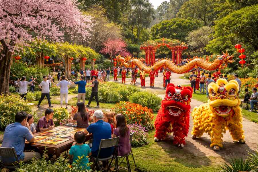 Immerse yourself in Lunar New Year traditions at South Coast Botanic Garden, with games, live performances, and festive food.